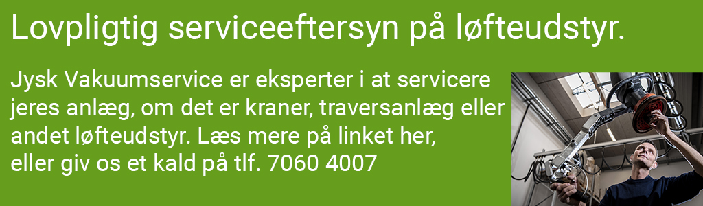 Vi har flere års erfaring i at udføre lovpligtige eftersyn på forskellige anlæg så som ALVAC, JLM, Vaculex, Tawi og andre. Vi formidler også salget af løfteudstyr og kraner hvis du har brug for at udskifte eller supplere eksisterende løfteudstyr.
